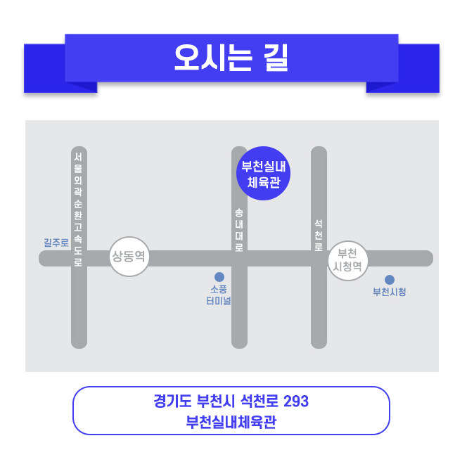 - 버스: 부천실내체육관 정류장 하차
