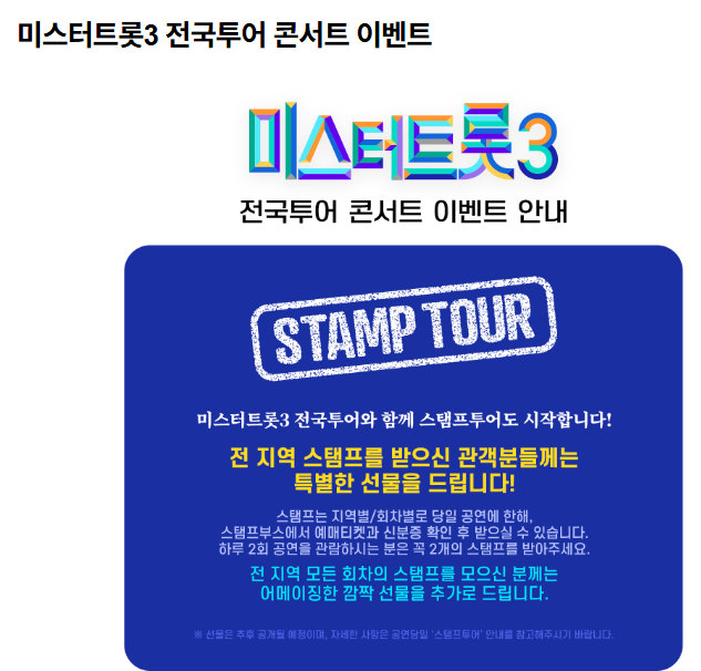 트롯 팬이라면 절대 놓칠 수 없는 순간이 다가옵니다! “미스터트롯3 전국투어 콘서트 – 부천”이 2025년 7월 26일(토)~27일(일), 경기도 부천실내체육관에서 이틀간 열립니다. TOP7 멤버들의 감동 무대와 팬심을 울리는 퍼포먼스, 그리고 팬 참여 이벤트까지 모두 즐길 수 있는 축제 같은 시간! 이 글을 통해 일정·예매 꿀팁·티켓 정보·관람 팁까지 하나도 빠짐없이 챙겨드릴게요 😊
