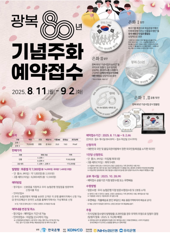 2025년은 광복 80주년을 맞이하는 뜻깊은 해입니다. 이를 기념해 발행되는 기념주화는 단순한 수집품을 넘어 우리 역사와 희망을 담은 상징적 작품입니다. 예약 기간과 방법, 발행 수량·가격·유의사항을 모조리 정리해서, 한 번 보고 바로 예약 준비할 수 있도록 만들었습니다. 읽는 분이 그대로 따라 할 수 있게 단계별 체크리스트와 실전 팁까지 담았습니다.