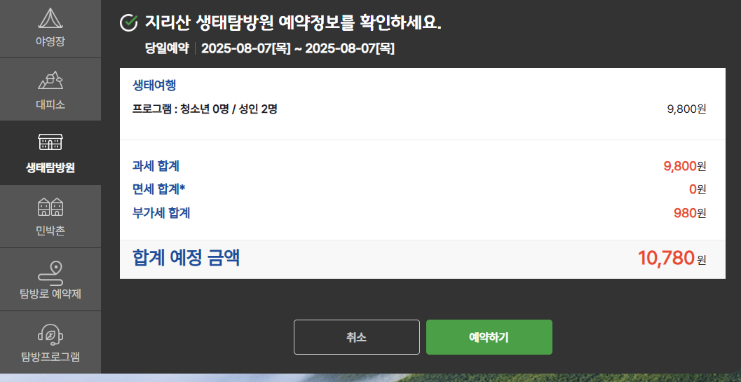 - 야영장·대피소 예약 : 지리산, 설악산 등 주요 국립공원