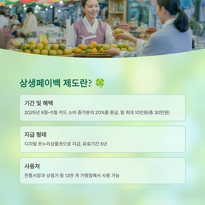 2025년 하반기 정부가 준비한 가장 주목할 만한 소비 진작 정책은 바로 상생페이백 카드소비 증가분 20% 환급 제도입니다.