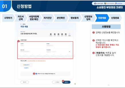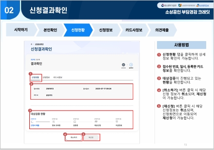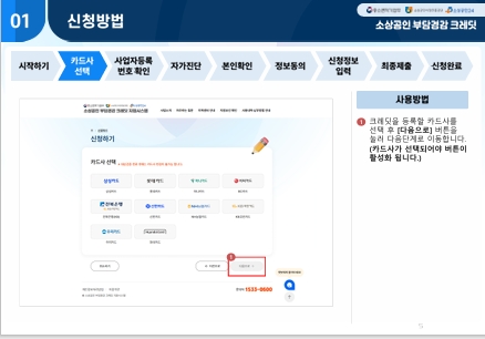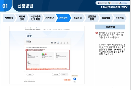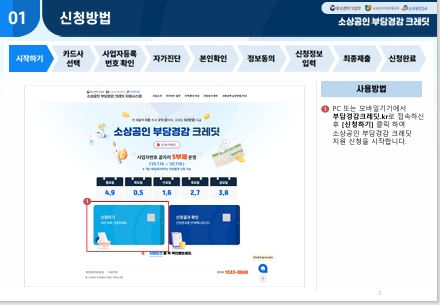 - 접속 사이트: 부담경감크레딧.kr 또는 소상공인24 신청 절차: