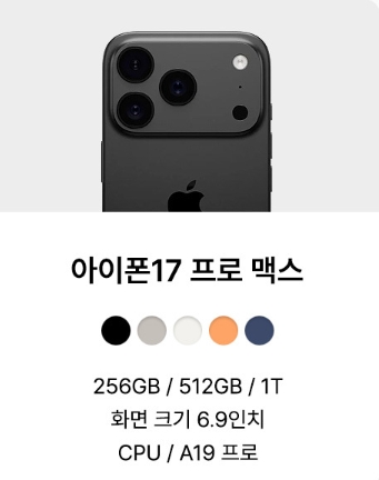 아이폰17 시리즈는 최소 128GB부터 1TB 모델까지 출시될 것으로 예상됩니다.