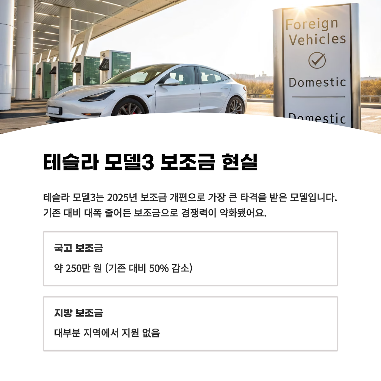 A. 받을 수 있지만 대폭 줄었습니다. 테슬라 모델3 기준 약 250만 원입니다.