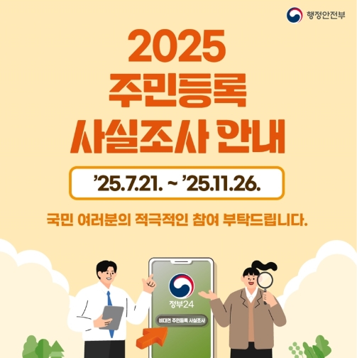2025년 주민등록 사실조사는 7월 22일부터 11월 26일까지 진행됩니다.