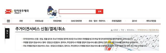 - [우편 → 주거이전 서비스] 메뉴 선택