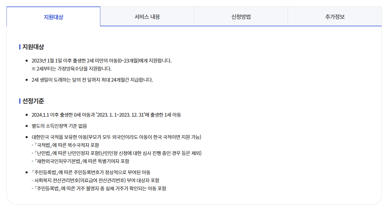 ➡ 대한민국 국적 아동만 지급 대상입니다.