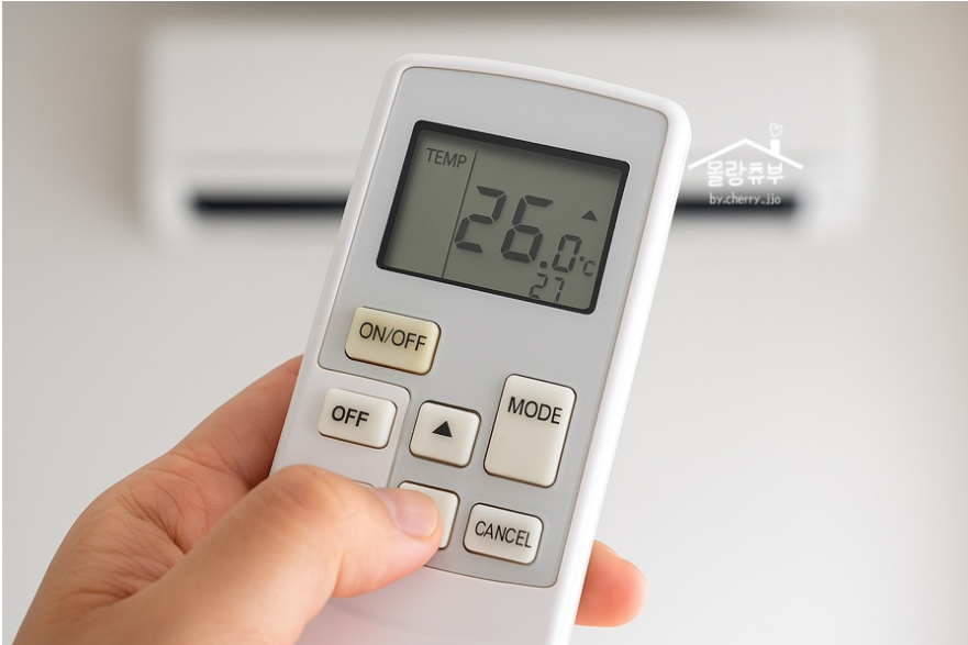 - 🌡️ 에어컨 26~27도 설정 + 선풍기 병행 사용