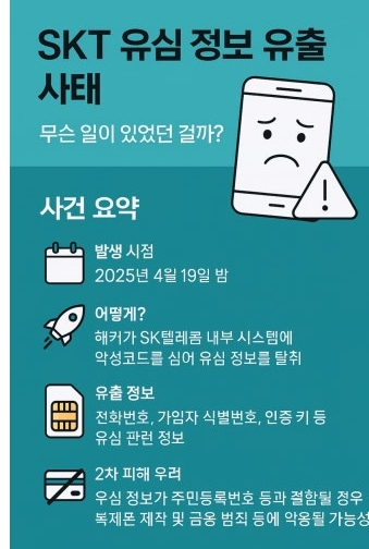 SKT 유심 해킹은 단순한 개인정보 탈취를 넘어 실질적인 금전 피해로 이어질 수 있는 위험한 공격입니다. 유심 재발급 차단, 이중 인증 설정, 통신 이상 징후 감지 등의 방법을 활용해 스스로 보안을 강화해야 합니다. 보안은 선택이 아닌 필수입니다. 오늘 바로 보안 점검을 시작하세요!